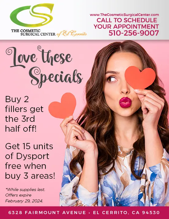 Dr. Gabriel Patino and his staff at The Cosmetic Surgical Center of El Cerrito provide specials to patients in Oakland, Berkeley, and the surrounding areas of California. Check back every month as we incorporate new cosmetic surgery, skin rejuvenation, and hair restoration specials.